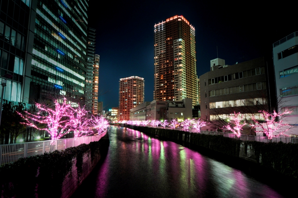 目黒川に冬の桜!『目黒川みんなのイルミネーション』